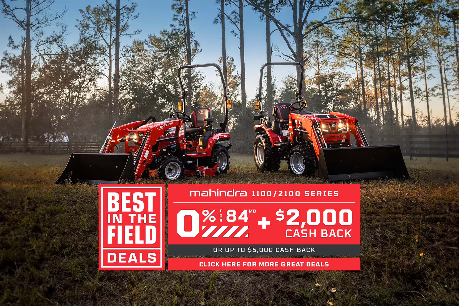Available 0% APR financing on purchases of selected new Mahindra tractor models from participating dealers’ inventory on qualified purchases through Mahindra Finance US LLC. A down-payment may be required for selected tractor models. Financing information is made available by Mahindra Finance USA LLC for discussion purposes only and is not a commitment to finance any transaction. The information provided is not intended and should not be construed as legal, accounting, or tax advice. All financing is subject to credit review and approval and other terms and conditions and is at Mahindra Finance USA LLC’s sole discretion. Offer available for a limited time only and subject to change without notice